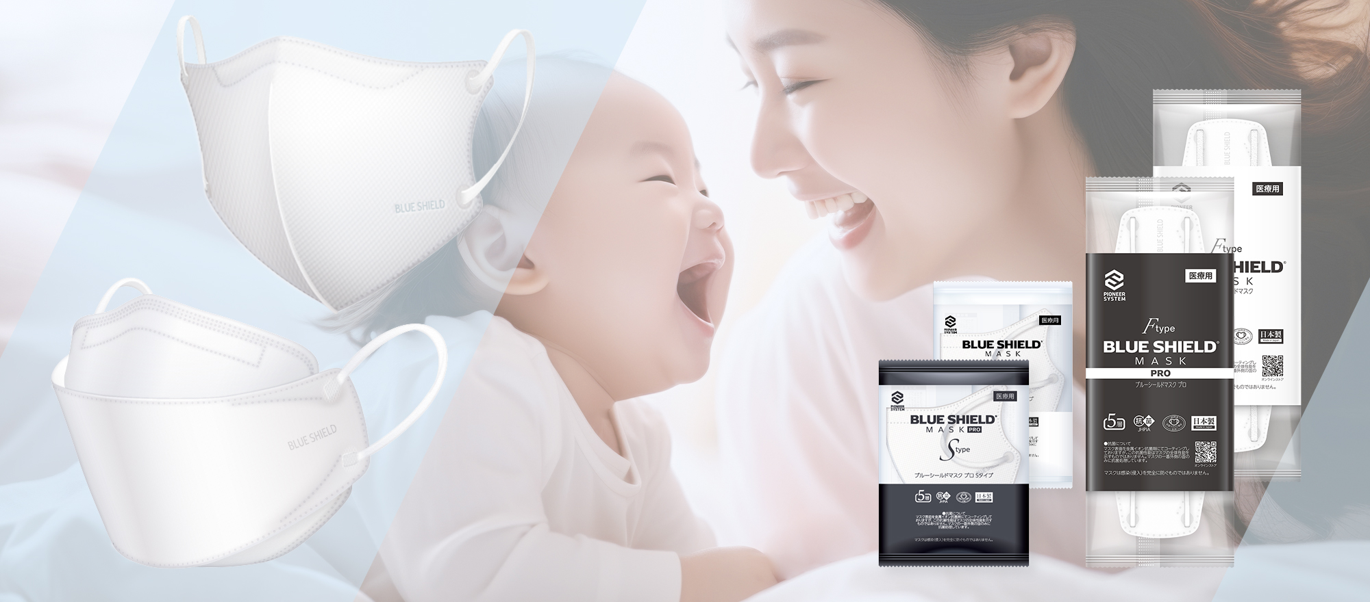 微粒子、細菌飛沫、ウイルス飛沫を1枚でもしっかりガードするフィルター性能。医療現場での血液浸透を防ぐ撥水機能。BLUE SHIELDコーティングであなたの明日を守ります。